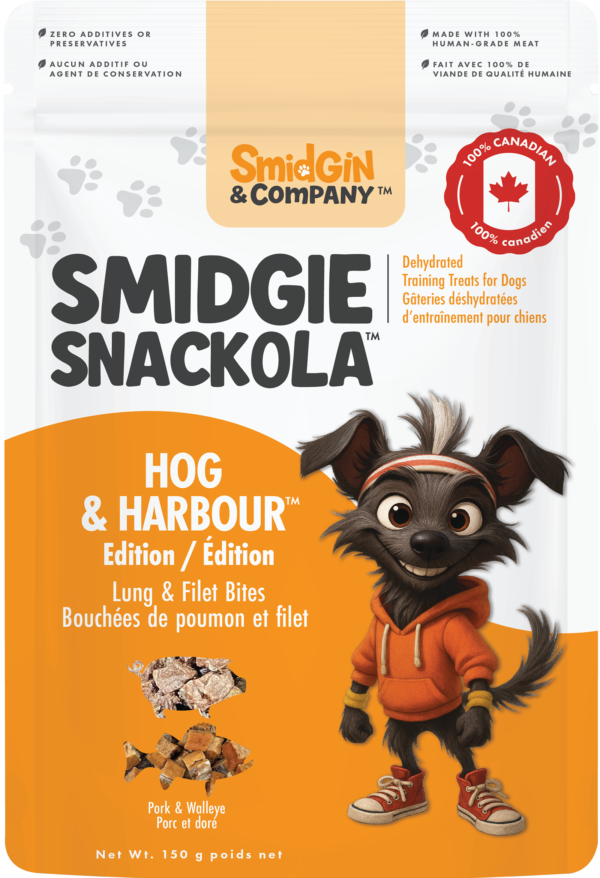 Hog & Harbour blends pork and walleye into an unpredictable, scent‑forward mix that keeps dogs attentive. Dehydration intensifies flavour and supports a clean, filler‑free reward routine.