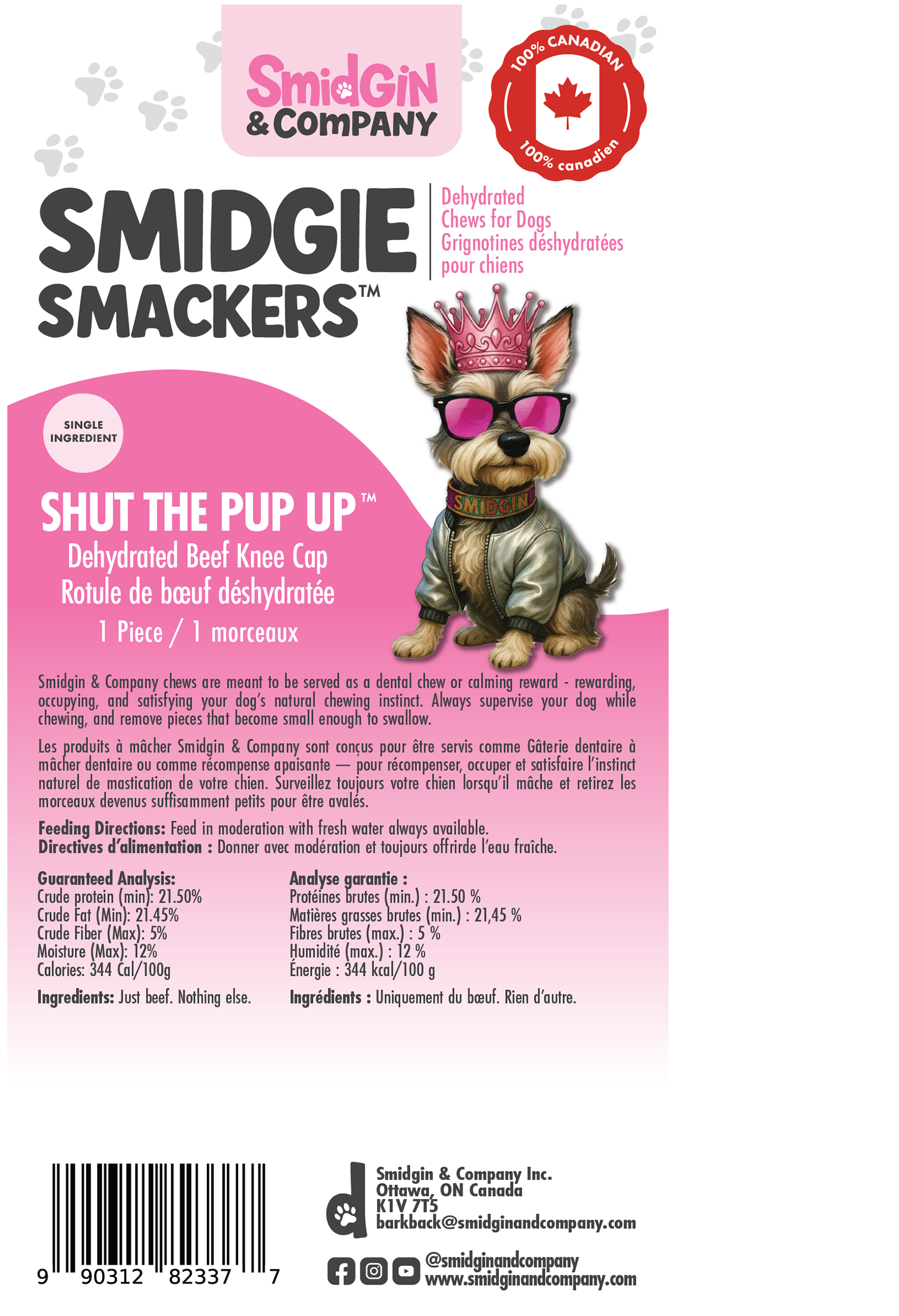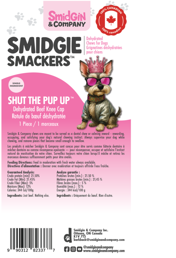 Shut the Pup Up kneecaps are slow-working, dehydrated beef chews designed to occupy jaws and minds. Dense, satisfying and naturally aromatic, they’re the go-to chew for dogs who need something to do—and humans who need five minutes of silence.